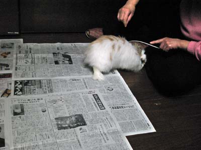 何故か新聞紙が結界のようです。